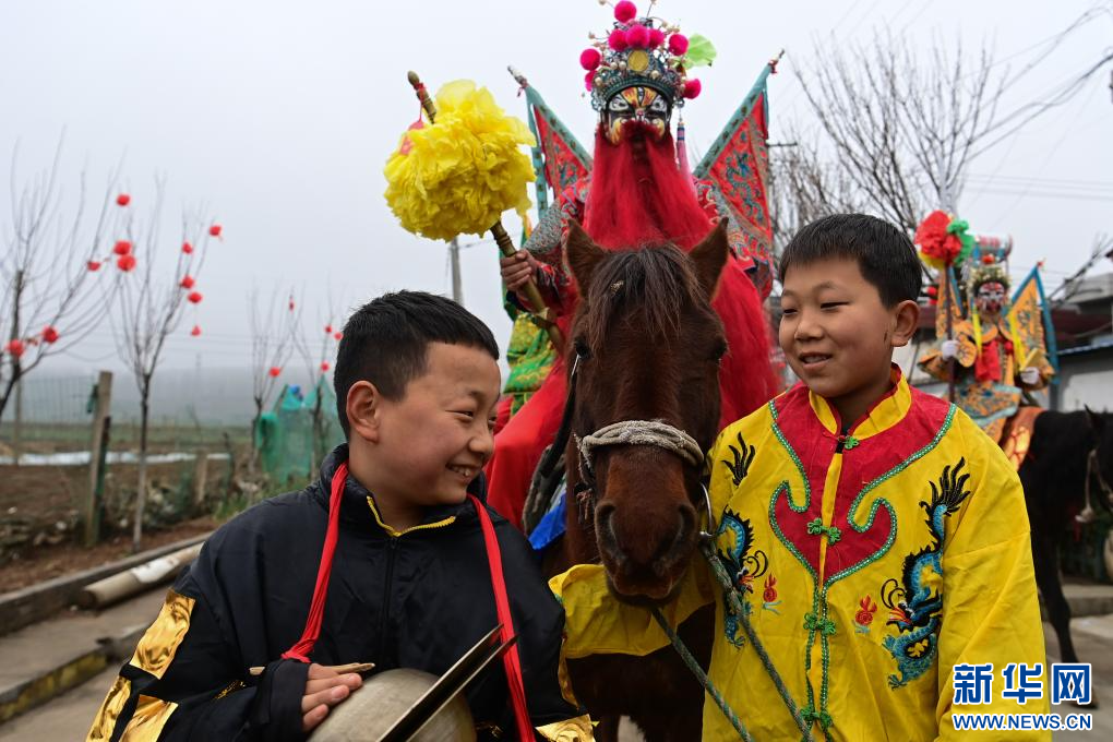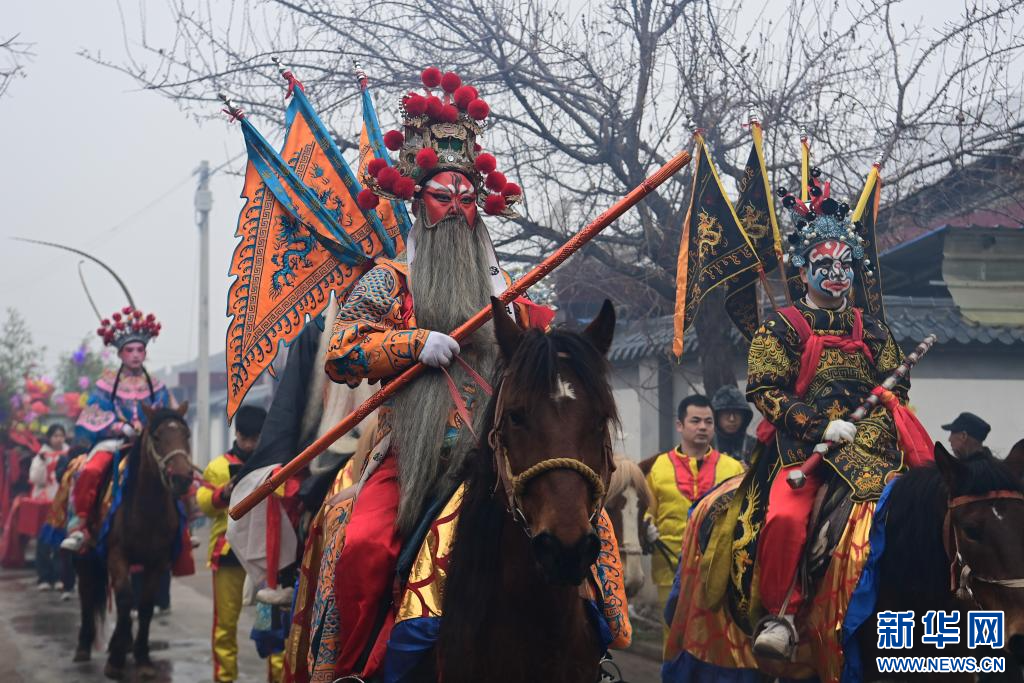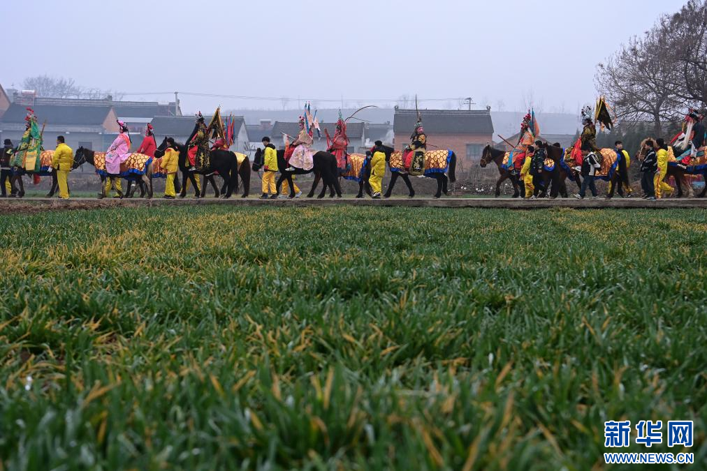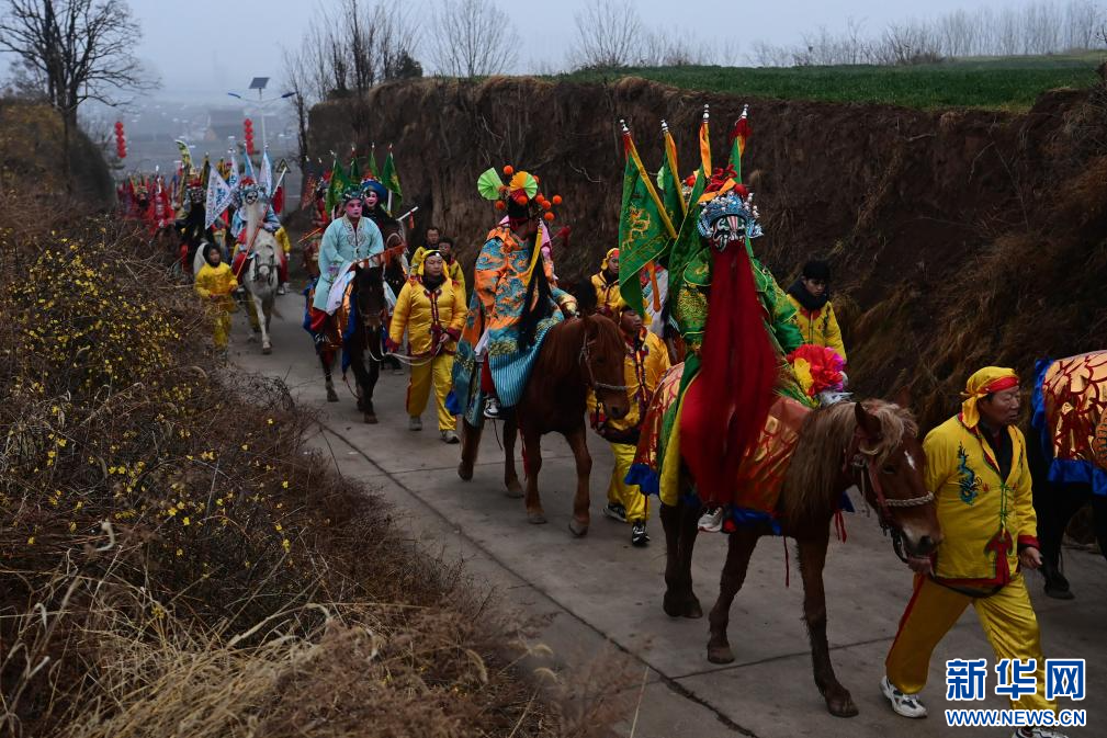 3月2日,陇县黄花峪村社火队在游演途中。新华社记者 邹竞一 摄