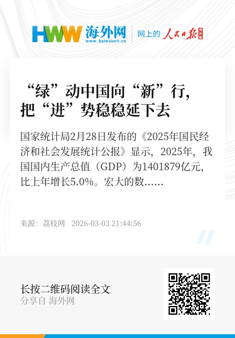 国家统计局2月28日发布的《2025年国民经济和社会发展统计公报》显示,2025年,我国国内生产总值(GDP)为1401879亿元,比上年增长5.0%。宏大的数据背后,是各行各业的活力迸发,是升腾的“烟火气”,是欣欣向荣的奋进场景。公报数据显示,2025年通过免签入境的外国人达到3008万人次,增长49.5%;入境游客总花费1311亿美元,增长39.2%。过去一年,“中国游”和“中国购”火爆,在热气腾腾的数据中得到进一步印证。
