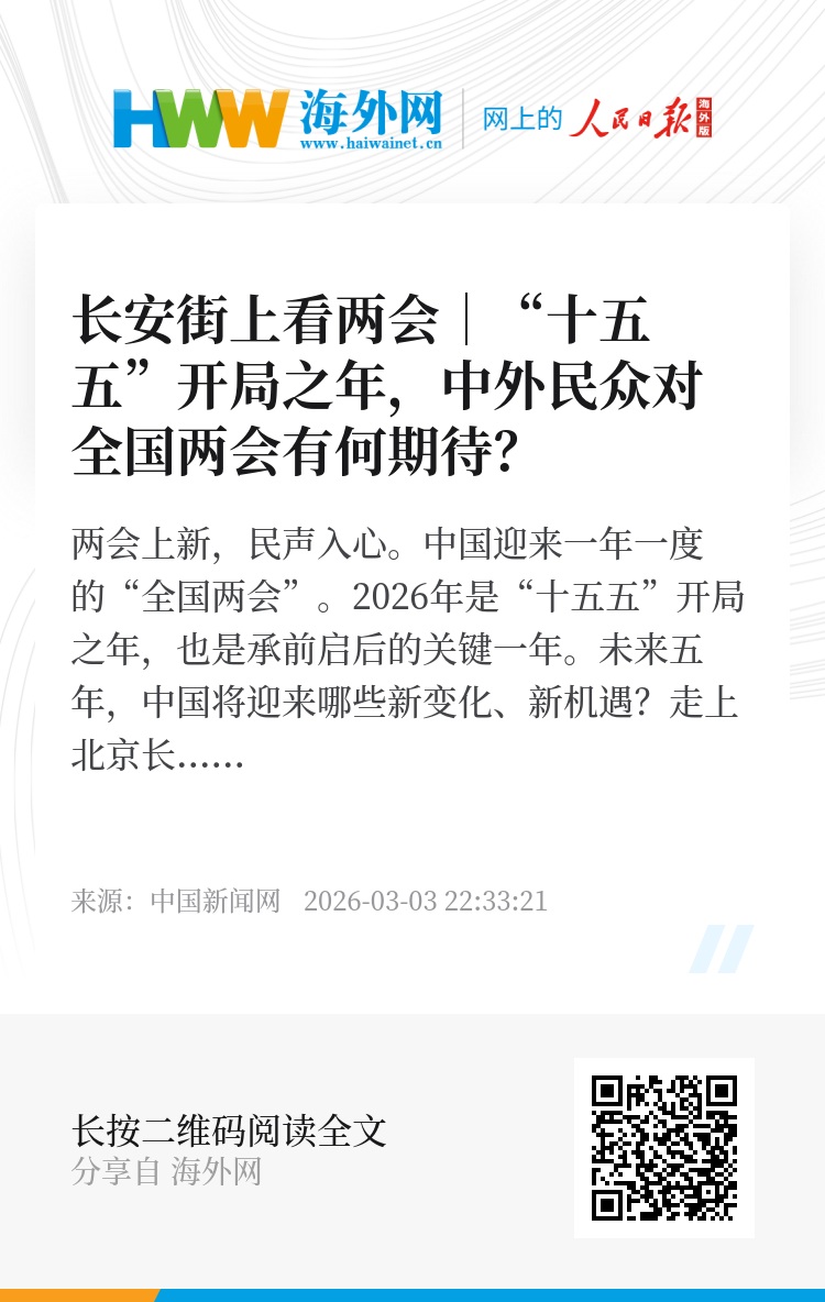 两会上新,民声入心。中国迎来一年一度的“全国两会”。2026年是“十五五”开局之年,也是承前启后的关键一年。未来五年,中国将迎来哪些新变化、新机遇?