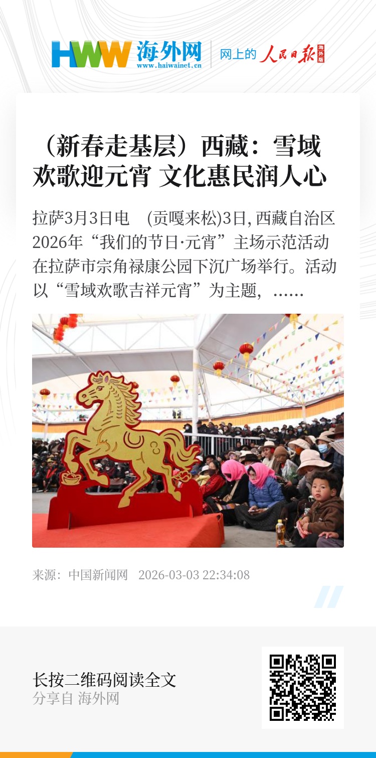 此次元宵主场活动,既彰显中华传统节日文化魅力,又展现新时代西藏崭新风貌。下一步,西藏将持续开展“我们的节日”系列文化惠民活动,不断丰富各族群众精神文化生活,为建设社会主义现代化新西藏注入强大精神动力。