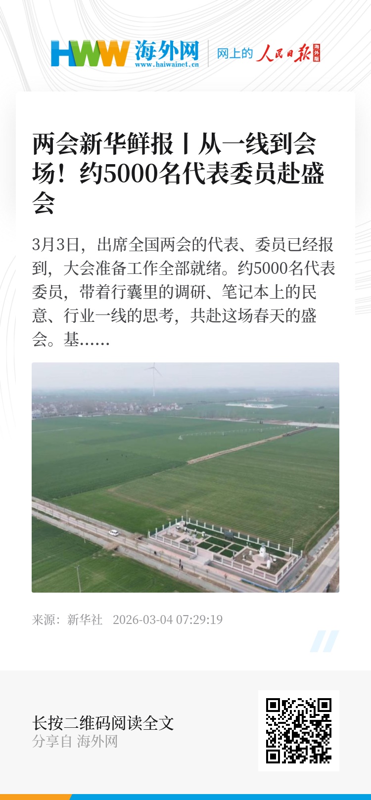 3月3日,出席全国两会的代表、委员已经报到,大会准备工作全部就绪。约5000名代表委员,带着行囊里的调研、笔记本上的民意、行业一线的思考,共赴这场春天的盛会。