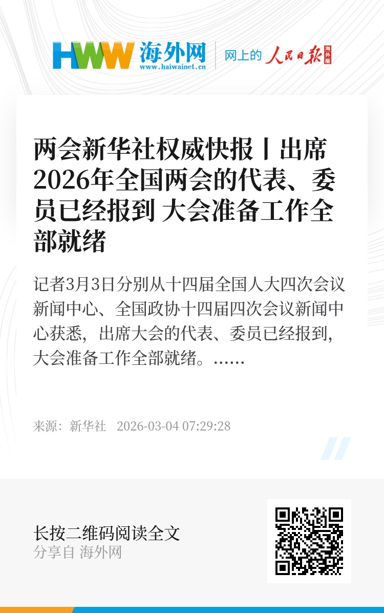 记者3月3日分别从十四届全国人大四次会议新闻中心、全国政协十四届四次会议新闻中心获悉,出席大会的代表、委员已经报到,大会准备工作全部就绪。