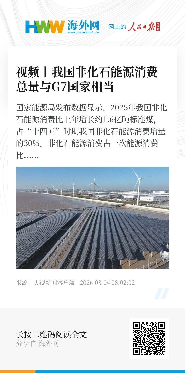 国家能源局发布数据显示,2025年我国非化石能源消费比上年增长约1.6亿吨标准煤,占“十四五”时期我国非化石能源消费增量的30%。