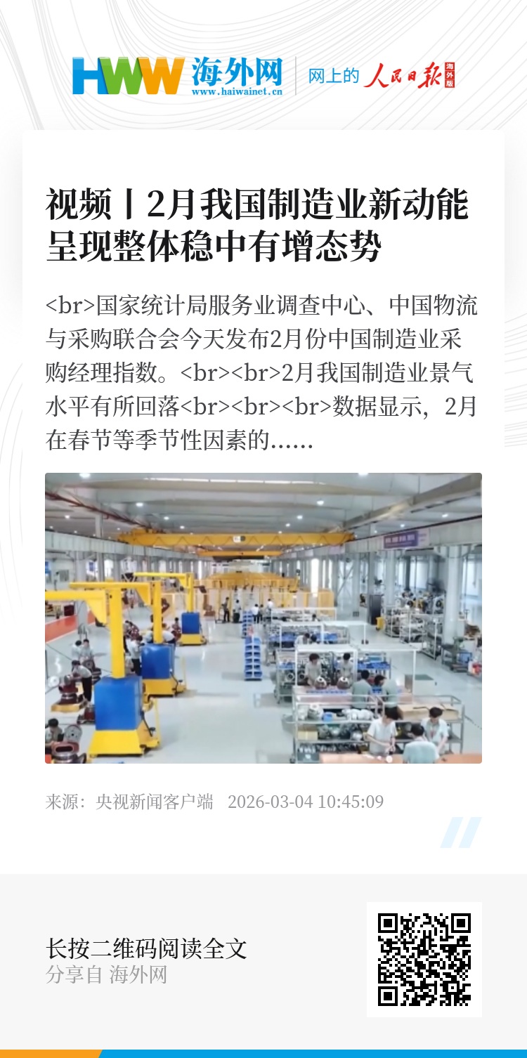 数据显示,2月在春节等季节性因素的影响下,制造业运行有所放缓,但积极变化仍在累积。