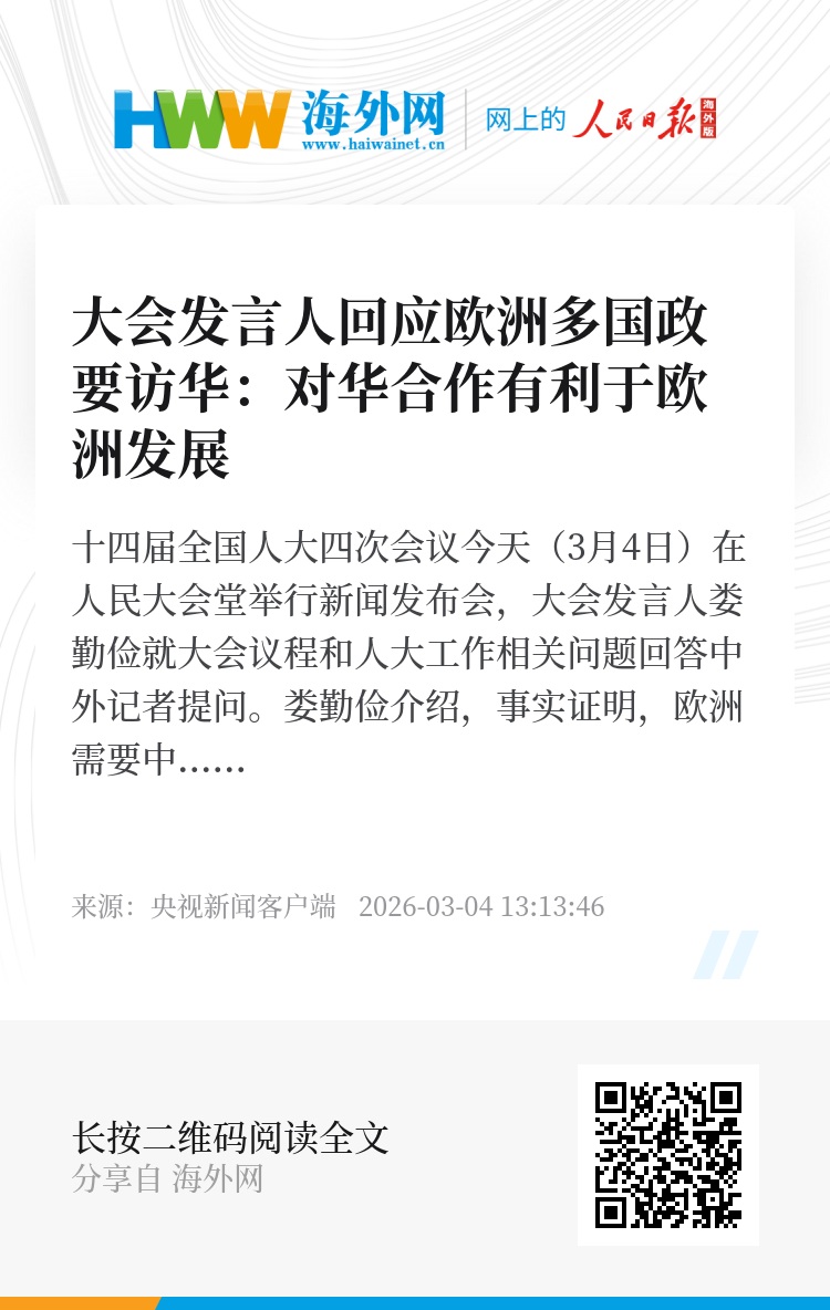 娄勤俭介绍,事实证明,欧洲需要中国,中国也需要欧洲。