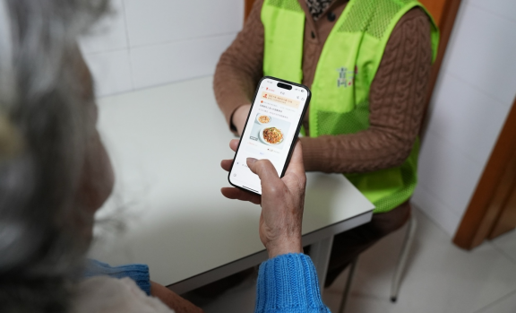 (图为春节前夕上海普陀区万里街道老人在学习使用千问AI下单点餐)