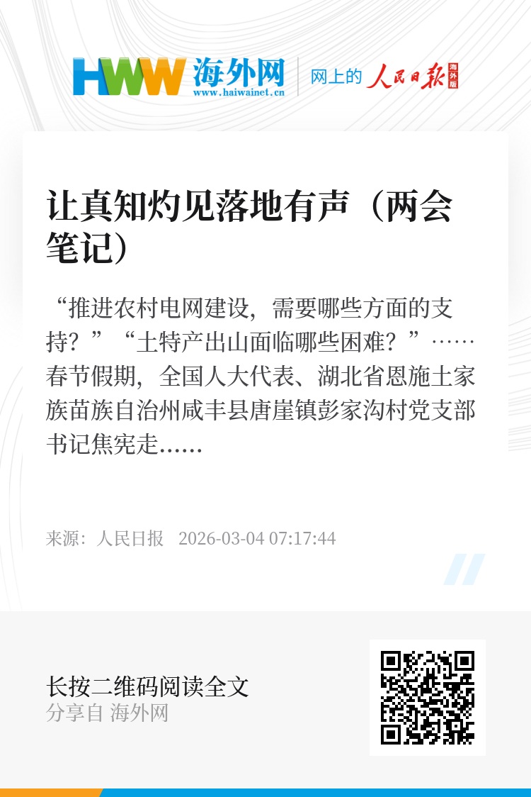 “推进农村电网建设,需要哪些方面的支持?”“土特产出山面临哪些困难?”……春节假期,全国人大代表、湖北省恩施土家族苗族自治州咸丰县唐崖镇彭家沟村党支部书记焦宪走进当地供电部门、农产品加工企业,与供电员工、农产品销售人员、养殖大户等深入交流,问需问难、问计问策,“笔记记得十分详实,建议内容也更加清晰完善”。