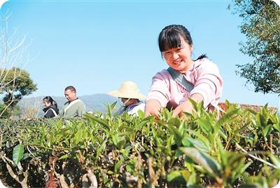 近日,在云南省普洱市宁洱哈尼族彝族自治县宁洱镇温泉村,村民采摘春茶。