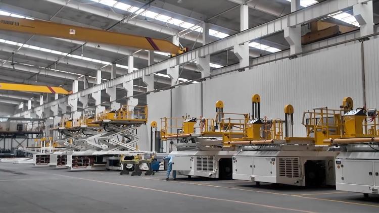 在威海广泰空港设备股份有限公司第二生产工厂,一台台机场平台车正有序装配、检测。