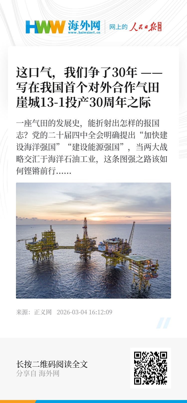 答案,不妨从崖城13-1气田的30载征程中探寻。