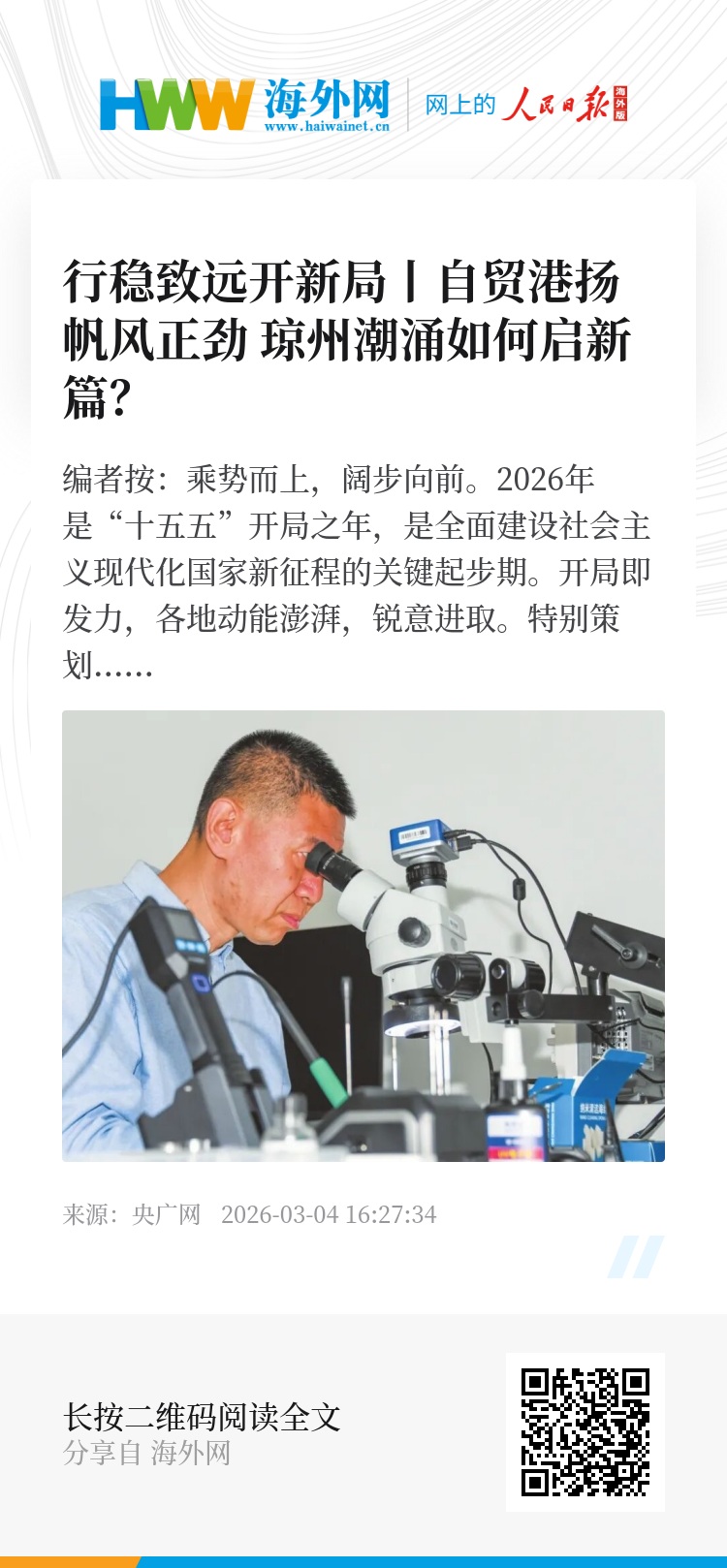 “十四五”的实践证明,开放引领、创新驱动是自贸港发展的关键。面向“十五五”,海南将立足国家发展需求,结合自身资源禀赋和自贸港政策优势,力争到2030年,建成一个比较优势独特、产业特色鲜明的新质生产力重要实践地,为自贸港高质量发展注入新动能。