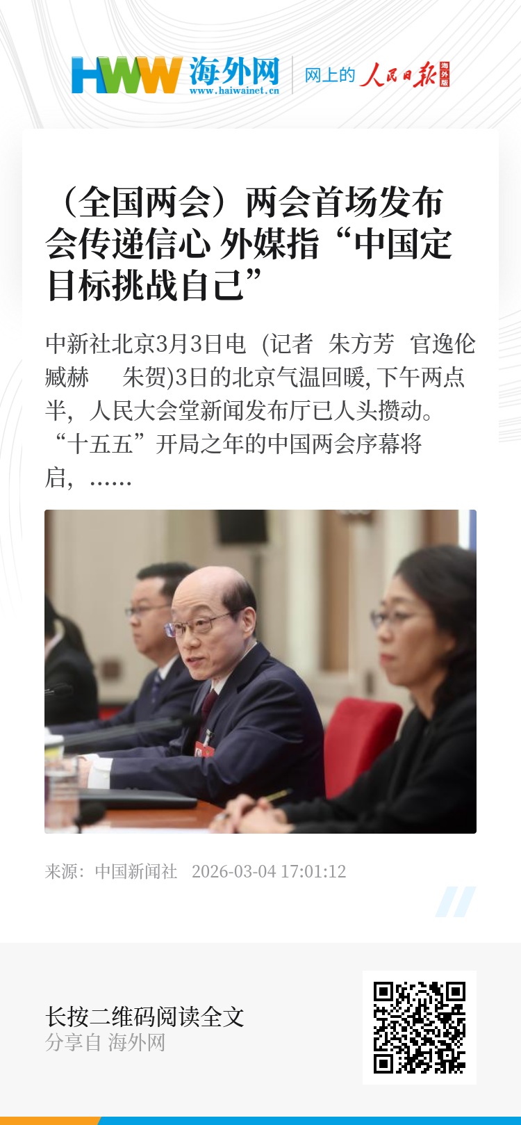 近来报道中国,多家外媒描述后者自信迈入2026年、“十五五”料将对全球经济格局产生重大影响。约70分钟的发布会,刘结一回答了12个问题,中外记者致力于从中解读最新讯息。参与现场报道的中阿卫视记者方浩明接受中新社记者采访时直抒感受,“中国经常给自己定目标,然后挑战自己。”