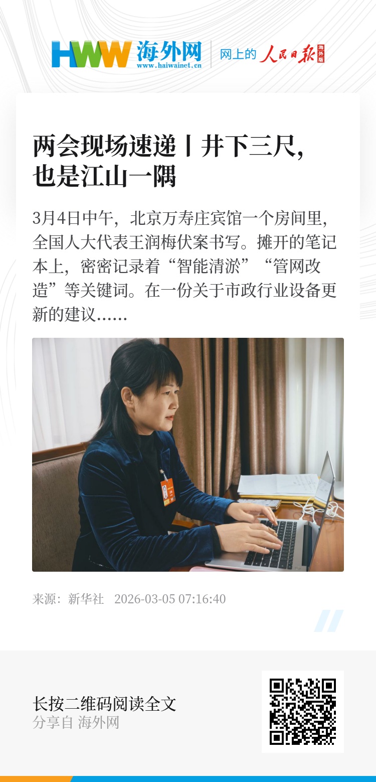 3月4日中午,北京万寿庄宾馆一个房间里,全国人大代表王润梅伏案书写。摊开的笔记本上,密密记录着“智能清淤”“管网改造”等关键词。