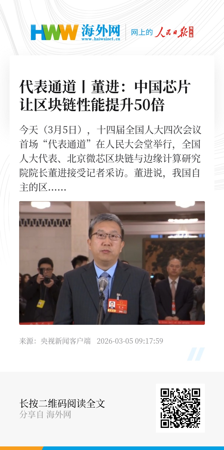 董进介绍,在数字经济发展过程中,区块链是最关键的数字基础设施之一。自己和团队研发的区块链专用加速芯片,这个芯片能让区块链的性能提升50倍。更重要的是,这项技术成功突破了超大规模区块链网络所面临的算力瓶颈,让我们国家可信的数字基础设施拥有了“中国芯”。目前随着应用的拓展,国家级的区块链网络已经形成,这个网络的目的就是要把我们国家跨境贸易、全球支付这些领域高价值核心数据缠绕在我们自主的系统里。面向“十五五”,我们也将咬定青山不放松,紧紧围绕我们国家的重大战略需求,确保我们国家的区块链领域的底层核心技术持续领先,真正夯实贯通全国、链通全球的可信“数字长城”。