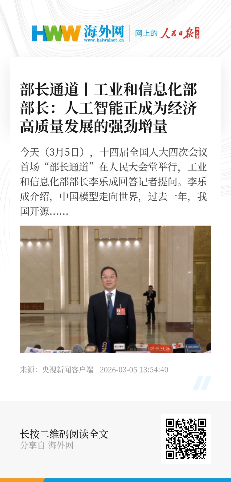 今天(3月5日),十四届全国人大四次会议首场“部长通道”在人民大会堂举行,工业和信息化部部长李乐成回答记者提问。