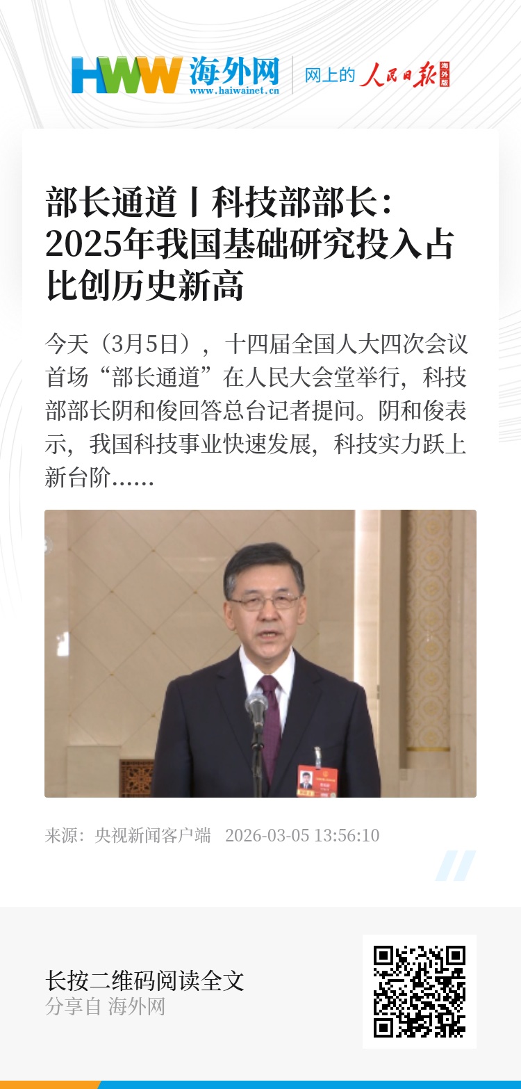 阴和俊表示,我国科技事业快速发展,科技实力跃上新台阶,创新指数排名上升至全球第10。2025年,全社会研发投入超过3.92万亿元,强度达到2.8%。基础研究投入接近2800亿元,占比达7.08%,首次破7,创历史新高。