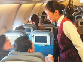 从上海浦东飞往新加坡的国航CA825航班,以福字、中国结、缤纷新春挂饰增添年味,推出妙趣横生的团扇拓印活动,旅客亲手拓下美好新春祝愿。
