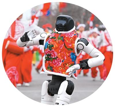 近日,在新疆维吾尔自治区昌吉市,非遗社火展演活动现场,机器人参与表演。新华社记者 王菲 摄
