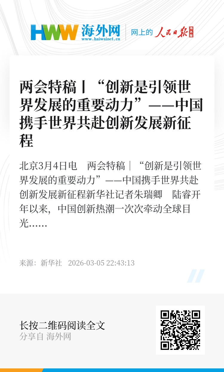 新华社北京3月4日电 两会特稿|“创新是引领世界发展的重要动力”——中国携手世界共赴创新发展新征程