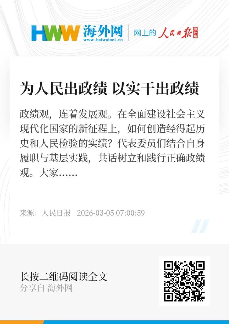 政绩观,连着发展观。在全面建设社会主义现代化国家的新征程上,如何创造经得起历史和人民检验的实绩?代表委员们结合自身履职与基层实践,共话树立和践行正确政绩观。大家表示,必须重实干、做实功、求实效,把为民造福作为最大政绩,在高质量发展的道路上奋楫扬帆。