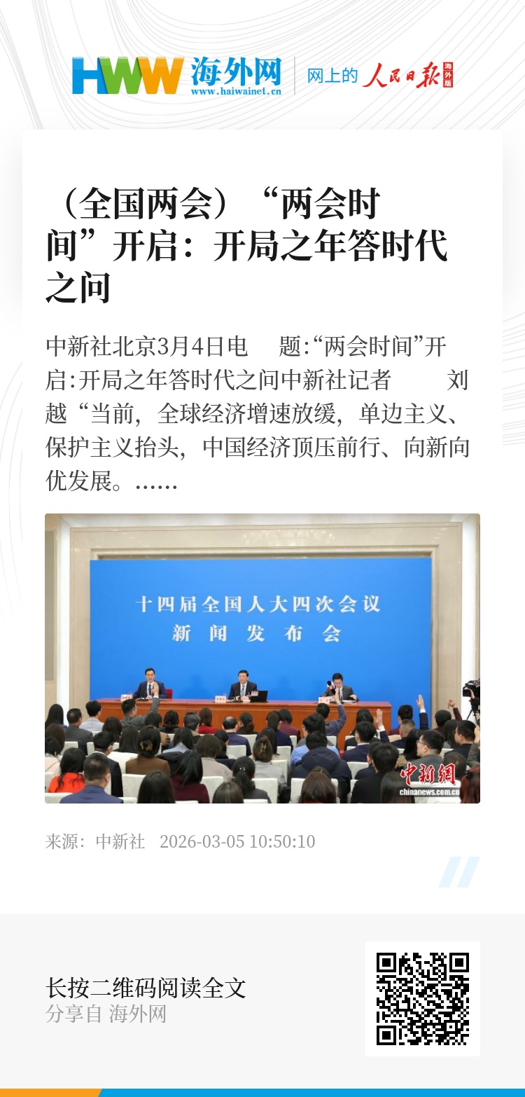 从国内发展到国际合作,从民生关切到大国外交,两会以开放姿态回应世界期待,以务实行动彰显大国担当。