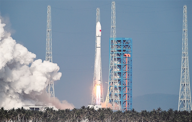“十四五”时期,长征系列运载火箭成功完成第600次发射,五年间共实施发射任务243次,发射密度和可靠性迈入世界前列。长征五号运载火箭托举中国空间站T字构型全面建成,嫦娥六号探测器完成世界首次月球背面采样返回,天问二号探测器开启小行星探测采样征程……