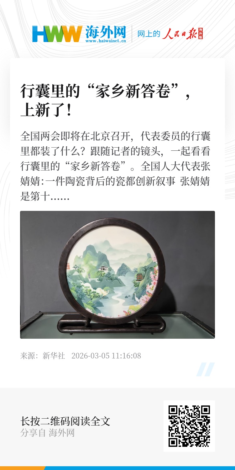 当千年窑火遇上AI设计、3D打印等数智“新火”,古老瓷都景德镇逐步从“制造”迈向“智造”。张婧婧携带的“大美江西”数字陶瓷山水画正是折射当代陶瓷艺术发展的缩影之一。她希望借助这件数字陶瓷山水画作品,让更多人了解景德镇、欣赏陶瓷艺术之美。