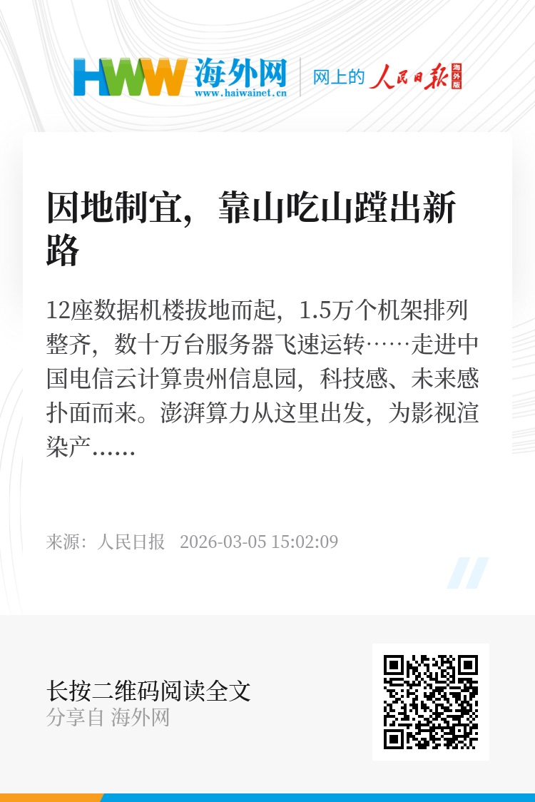 12座数据机楼拔地而起,1.5万个机架排列整齐,数十万台服务器飞速运转……走进中国电信云计算贵州信息园,科技感、未来感扑面而来。澎湃算力从这里出发,为影视渲染产业提供支撑保障。