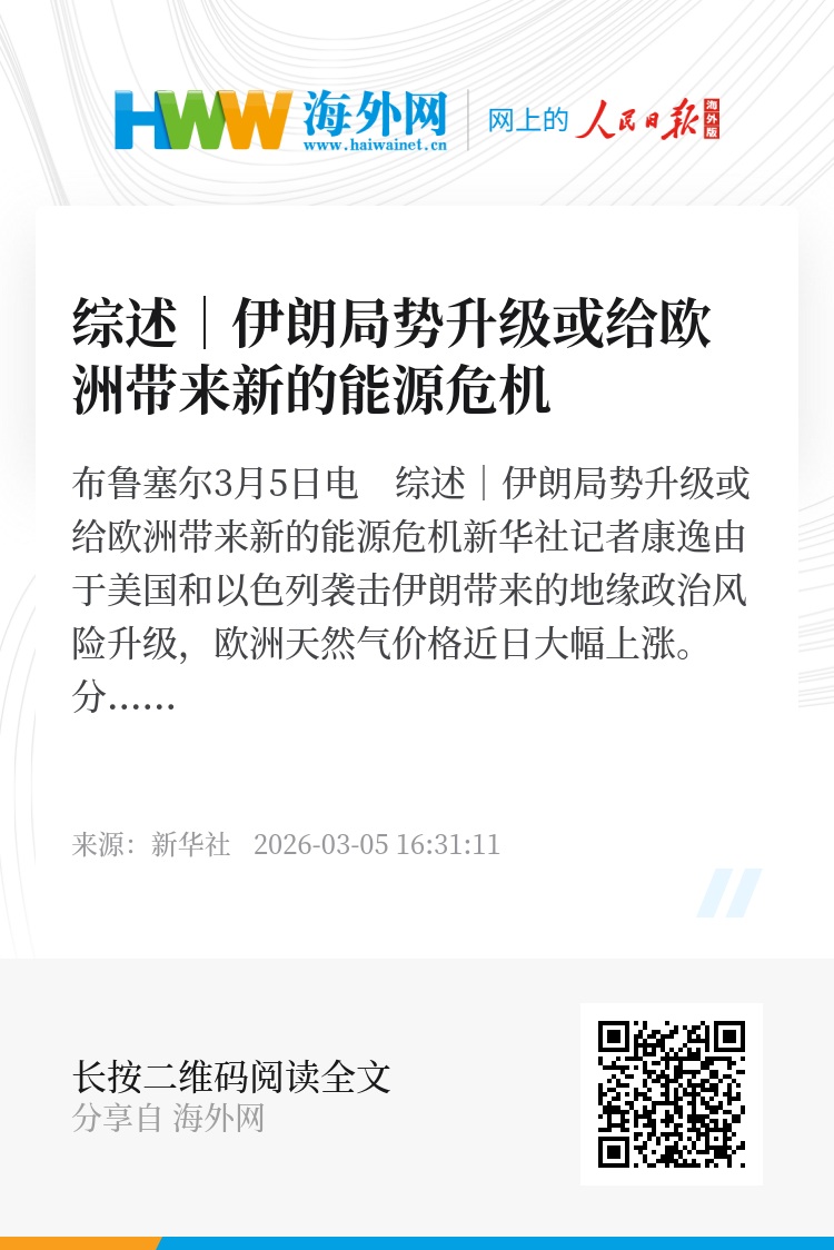 新华社布鲁塞尔3月5日电 综述|伊朗局势升级或给欧洲带来新的能源危机