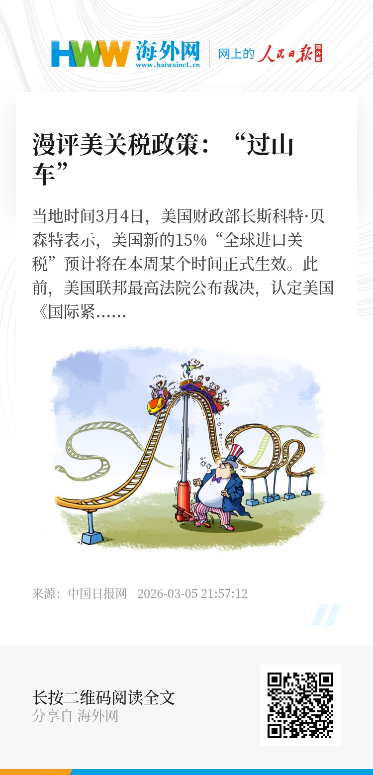 美国反复“横跳”的关税政策不仅给美国企业和消费者造成困扰,增加压力和不确定性,其赤裸裸的贸易保护行径也为世界各国和全球贸易带来巨大冲击和风险。(陈籽)