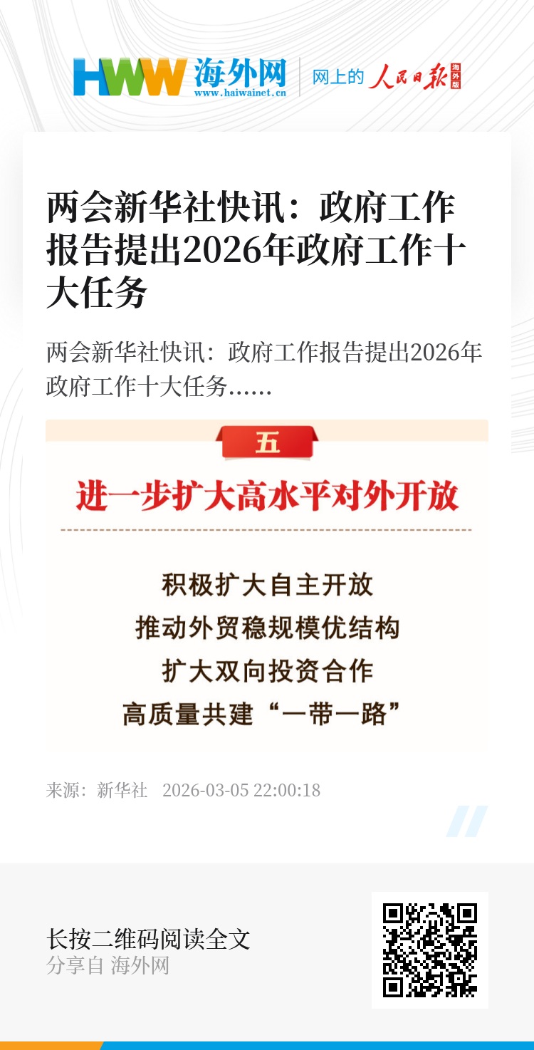 两会新华社快讯:政府工作报告提出2026年政府工作十大任务