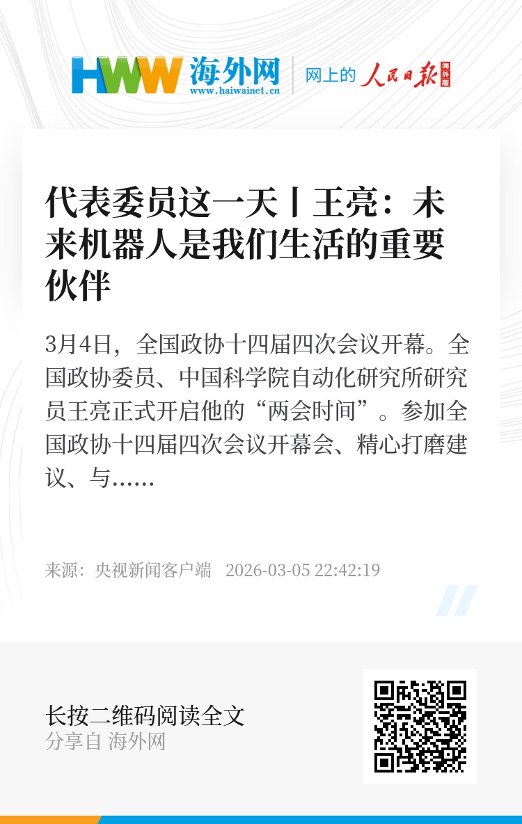 3月4日,全国政协十四届四次会议开幕。全国政协委员、中国科学院自动化研究所研究员王亮正式开启他的“两会时间”。参加全国政协十四届四次会议开幕会、精心打磨建议、与相关专业的委员讨论…… 两会期间,王亮的日程安排紧凑而充实。