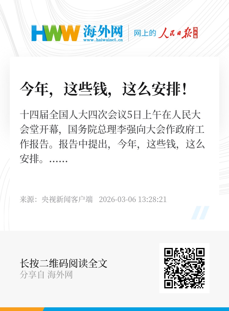 十四届全国人大四次会议5日上午在人民大会堂开幕, 国务院总理李强向大会作政府工作报告。报告中提出,今年,这些钱,这么安排。