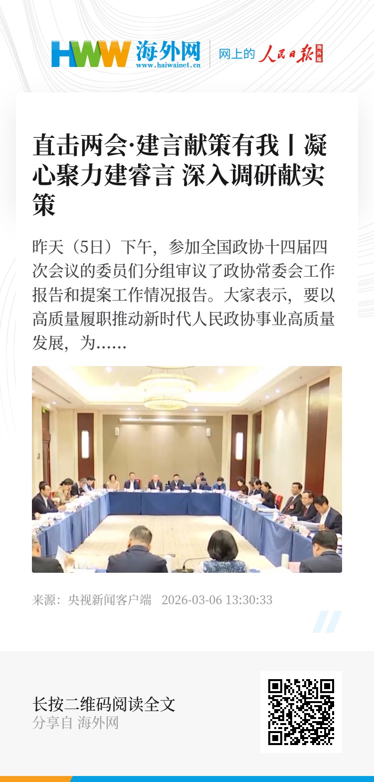 昨天(5日)下午,参加全国政协十四届四次会议的委员们分组审议了政协常委会工作报告和提案工作情况报告。大家表示,要以高质量履职推动新时代人民政协事业高质量发展,为实现“十五五”良好开局和推进中国式现代化凝聚团结奋斗力量。