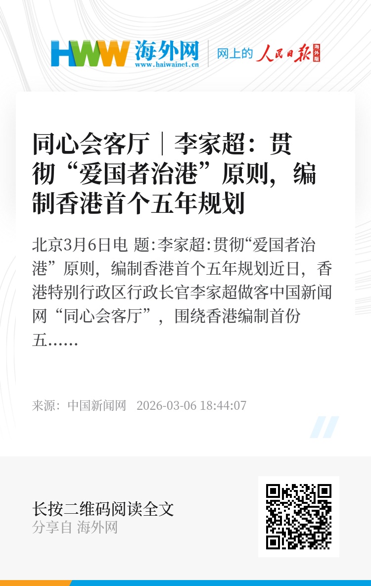 中新网北京3月6日电 题:李家超:贯彻“爱国者治港”原则,编制香港首个五年规划