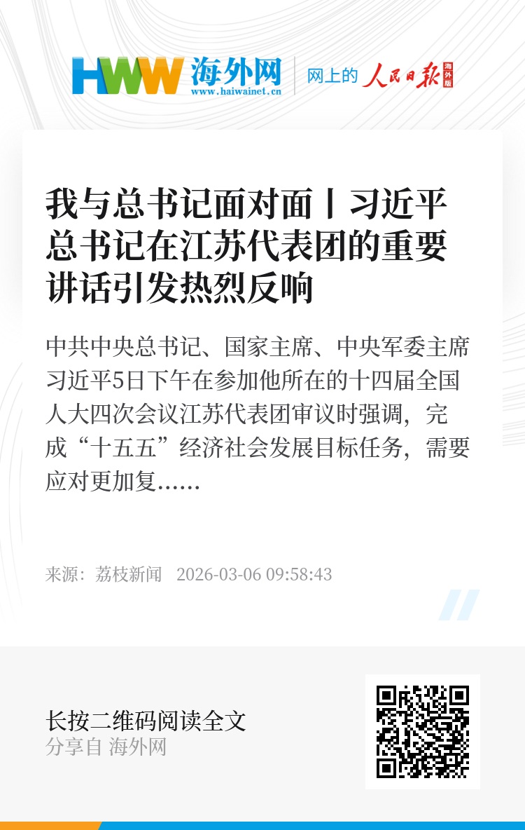 中共中央总书记、国家主席、中央军委主席习近平5日下午在参加他所在的十四届全国人大四次会议江苏代表团审议时强调,完成“十五五”经济社会发展目标任务,需要应对更加复杂的环境、解决更多深层次矛盾。江苏等经济大省处在改革开放前沿,要在研究新情况、解决新问题上下功夫、出经验。