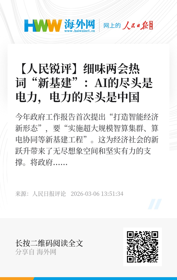 可以预见,未来AI对电力的需求将是爆炸式的。Token出海的本质,就是把电力变成算力,再把算力变成智能。谁的电便宜、谁的电稳、谁的电网调得快,谁就握着AI时代的成本底牌。所以网上又流传一句话,叫“电力的尽头是中国”。