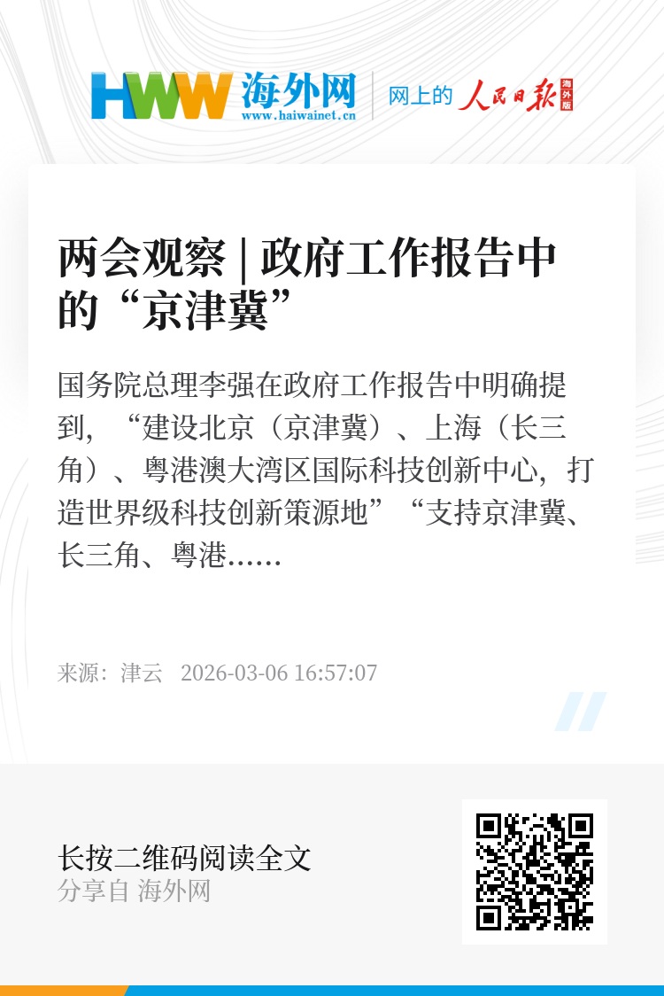 瓣瓣同心,协同向新。政府工作报告两次提及京津冀,是期许更是号角,十二载深耕不辍,是积累更是起点。京津冀这片21.6万平方公里的热土,乘着两会春风,把政策利好转化为发展实效,持续出圈出彩,在建设国际科技创新中心,打造世界级城市群的征程上未来可期。(评论员 彭俊勇)