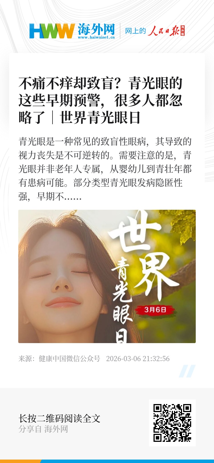 青光眼是一种常见的致盲性眼病,其导致的视力丧失是不可逆转的。需要注意的是,青光眼并非老年人专属,从婴幼儿到青壮年都有患病可能。