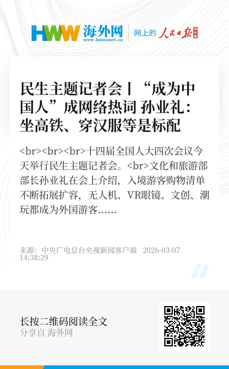 文化和旅游部部长孙业礼在会上介绍,入境游客购物清单不断拓展扩容,无人机、VR眼镜、文创、潮玩都成为外国游客眼中的中国特产、中国好物。