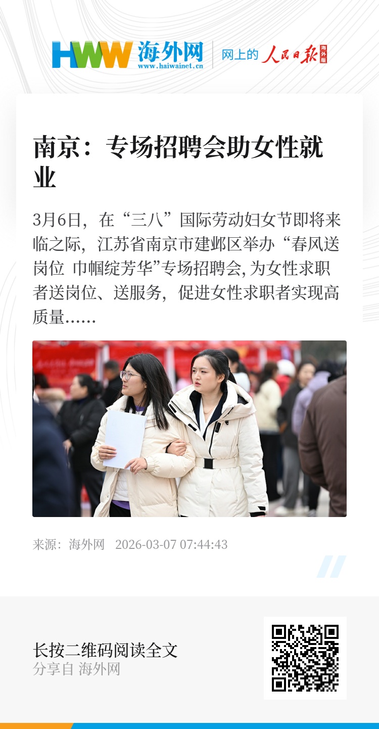 3月6日,在“三八”国际劳动妇女节即将来临之际,江苏省南京市建邺区举办“春风送岗位 巾帼绽芳华”专场招聘会,为女性求职者送岗位、送服务,促进女性求职者实现高质量就业。图源:视觉中国