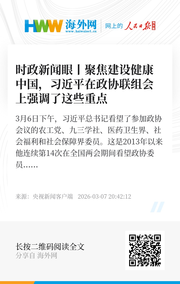 6日的联组会上,总书记强调,到2035年建成健康中国是中共中央作出的一项战略决策,“十五五”是实现这一目标的关键时期,必须统筹谋划、加紧推进,力求取得决定性进展。