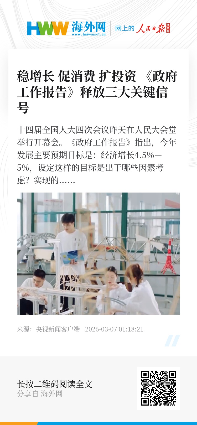 2026年《政府工作报告》明确提出,要充分挖掘释放有效投资潜力。今年我国将加大重点领域投入,引导社会资本参与,让投资更精准、更有效,助力经济发展和民生改善。
