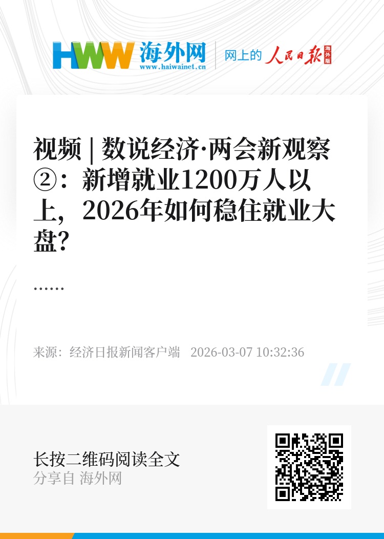 视频 | 数说经济·两会新观察②:新增就业1200万人以上,2026年如何稳住就业大盘?