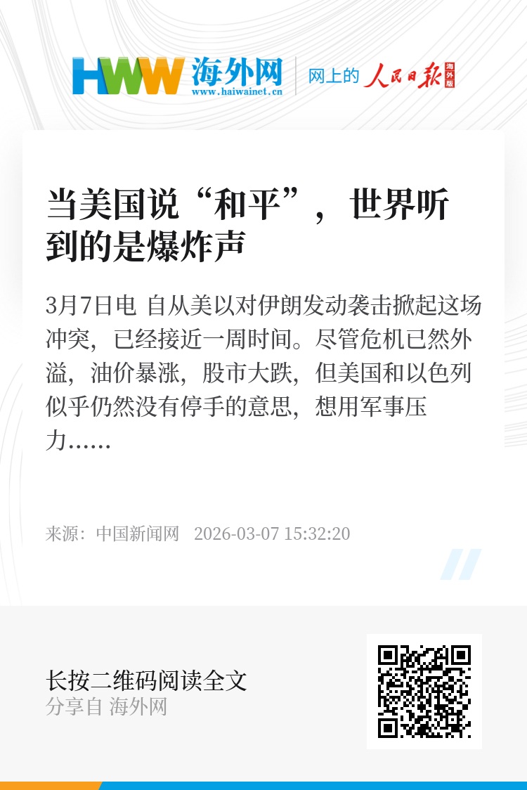 中新网3月7日电 自从美以对伊朗发动袭击掀起这场冲突,已经接近一周时间。尽管危机已然外溢,油价暴涨,股市大跌,但美国和以色列似乎仍然没有停手的意思,想用军事压力让伊朗屈服,达成所谓“以战促和”。