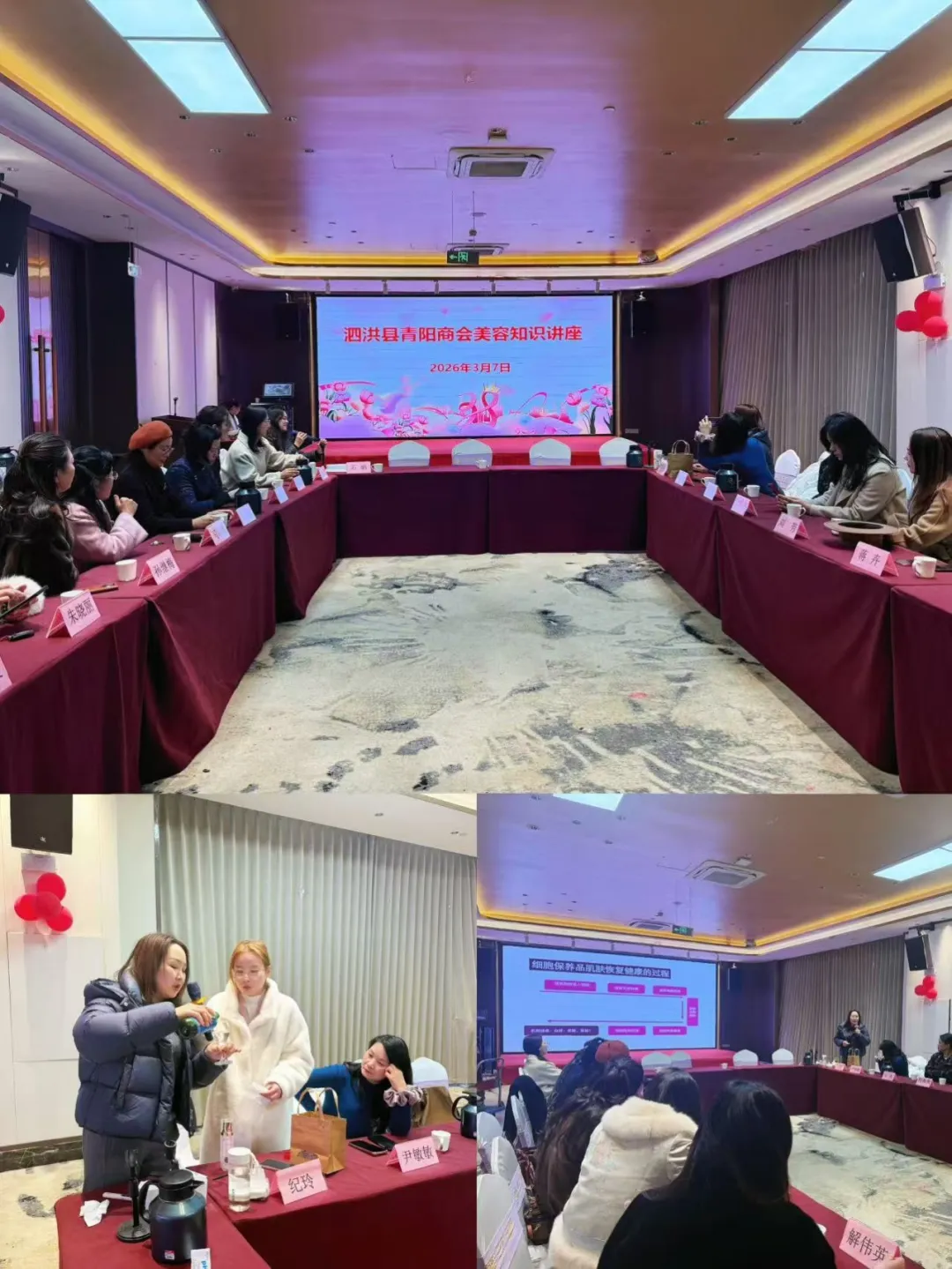 外在形象塑造是女企业家关注的焦点。活动特邀泗洪女主人项目经理纪玲为大家带来“职场女性美颜秘籍”分享,围绕不同肤质护理、换季维稳、防晒抗衰等核心内容,针对熬夜肌急救、带妆修复等痛点提供解决方案,并推荐高性价比便携护肤产品。现场女企业家认真记录、拍摄,纷纷点赞:“技巧实用不繁琐,快速提升气质,太适合忙碌的职场女性。”