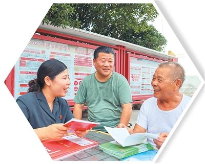 2025年8月14日,江西省瑞昌市黄金乡金岭村“法律明白人”广场,基层法官为村民讲解法律常识。