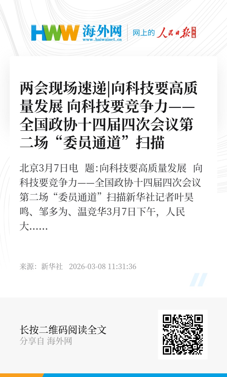 新华社北京3月7日电 题:向科技要高质量发展 向科技要竞争力——全国政协十四届四次会议第二场“委员通道”扫描