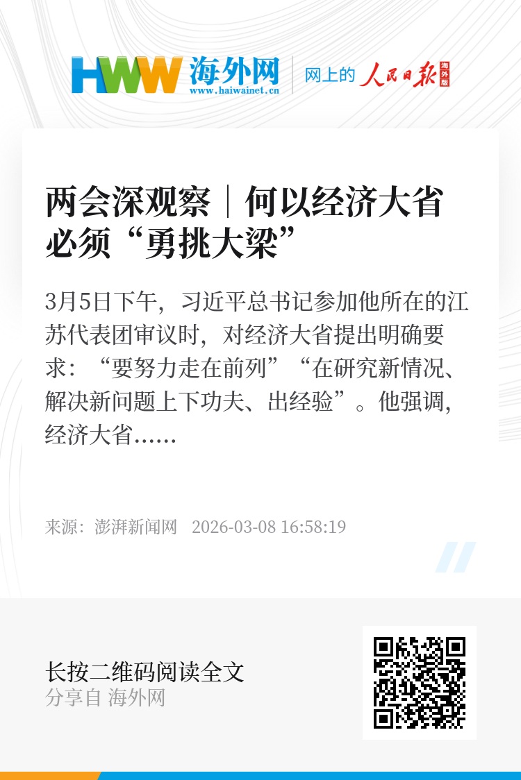 时空交汇,使命必然。压舱石必须稳,发动机必须强,探路者必须勇——这就是何以经济大省必须“挑大梁”的答案。