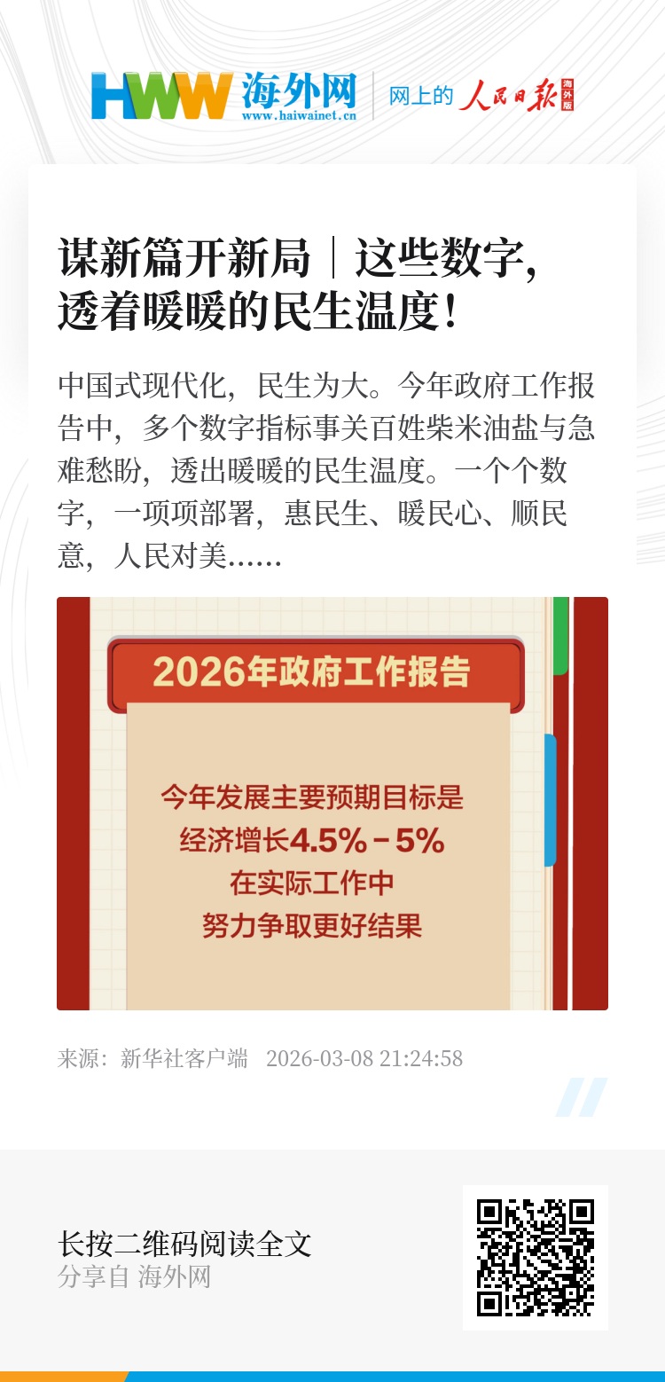 中国式现代化,民生为大。今年政府工作报告中,多个数字指标事关百姓柴米油盐与急难愁盼,透出暖暖的民生温度。一个个数字,一项项部署,惠民生、暖民心、顺民意,人民对美好生活的向往,从这里一步步变为获得感、幸福感、安全感。